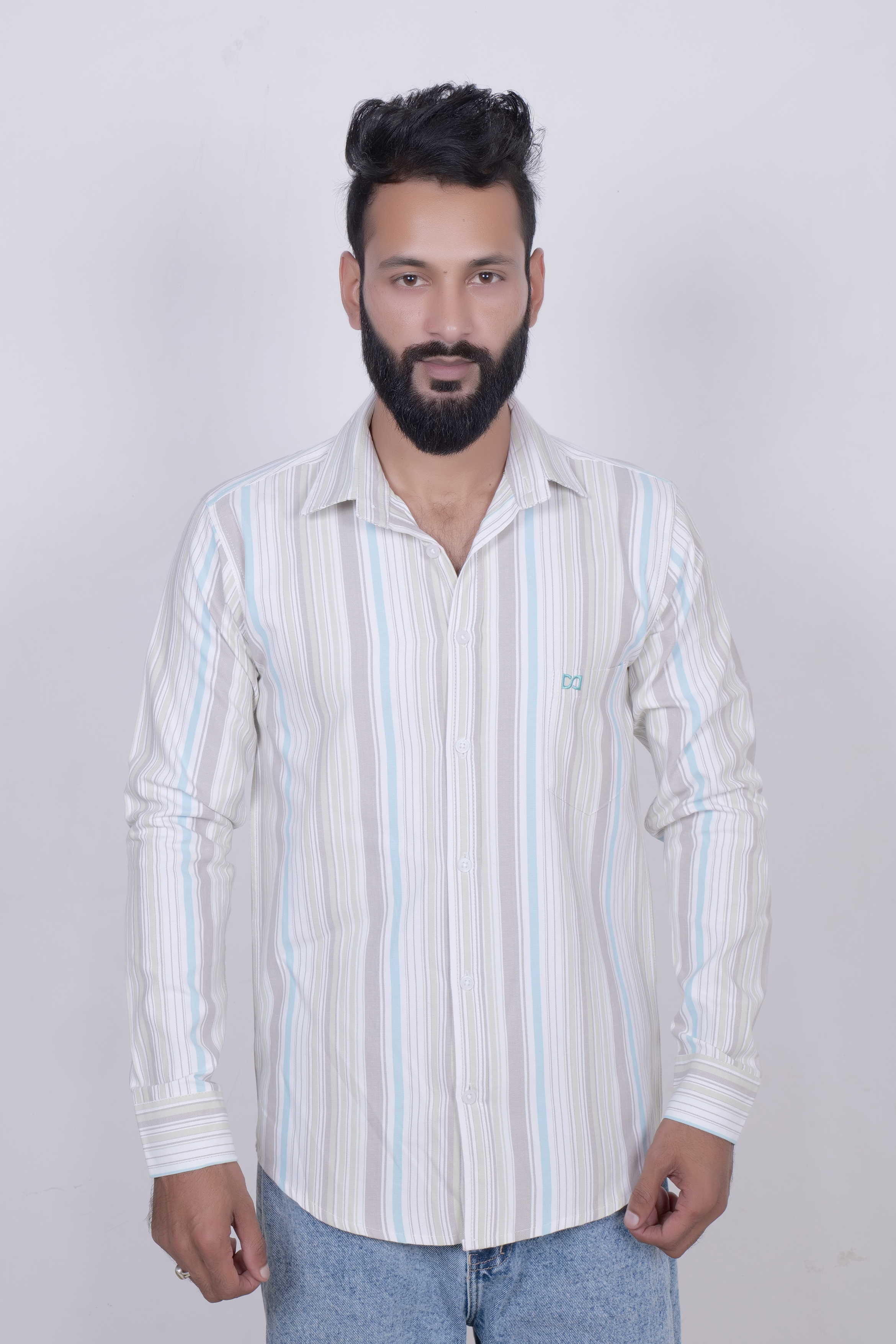 Drapes Dream Light Blue-Off White Striped Men's Shirt