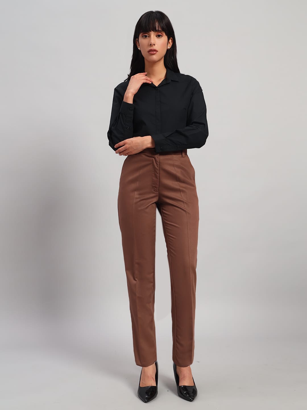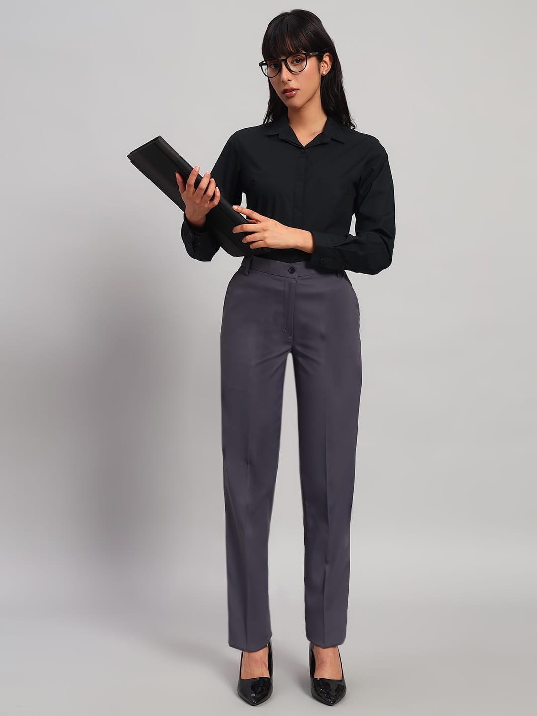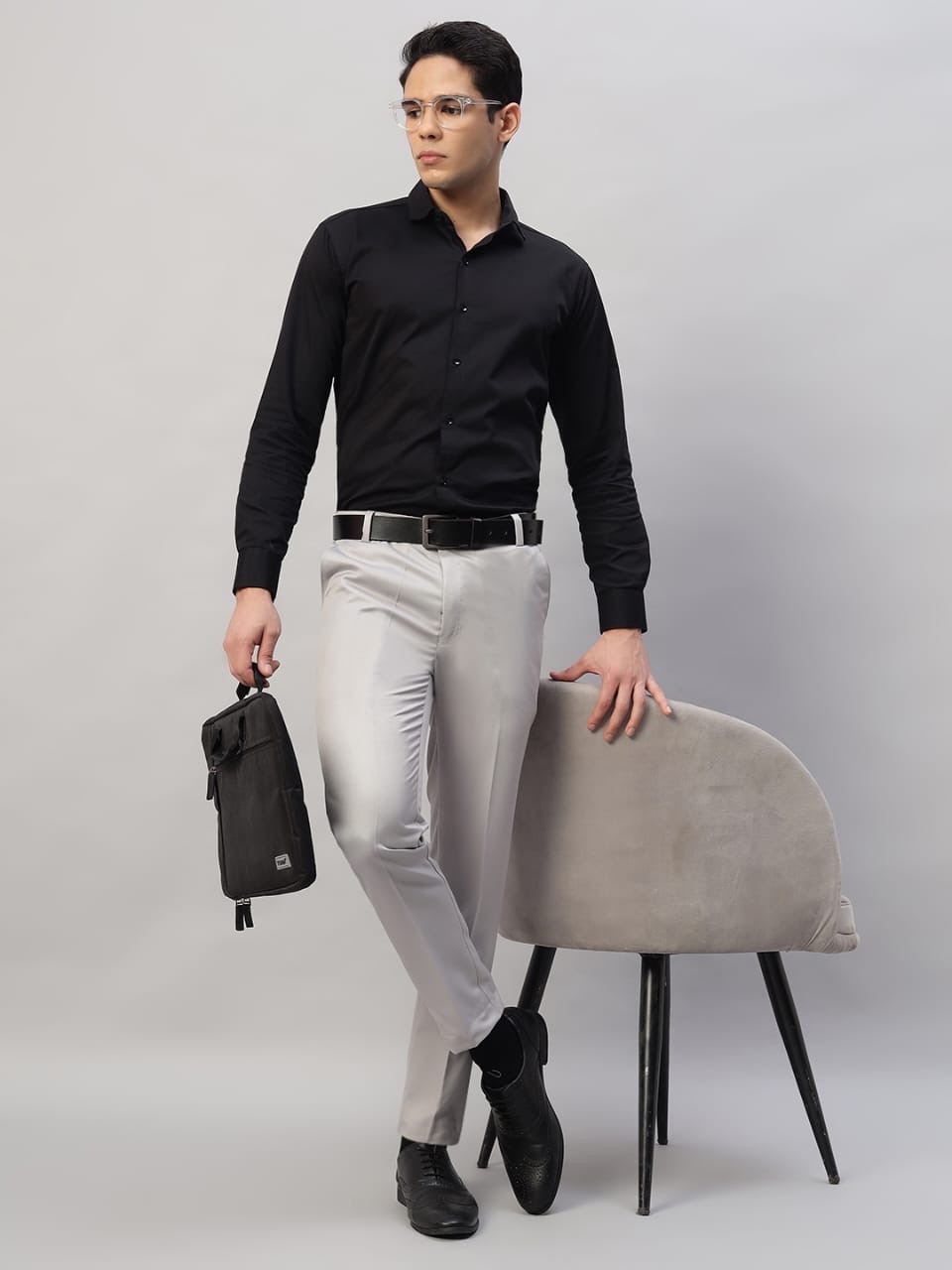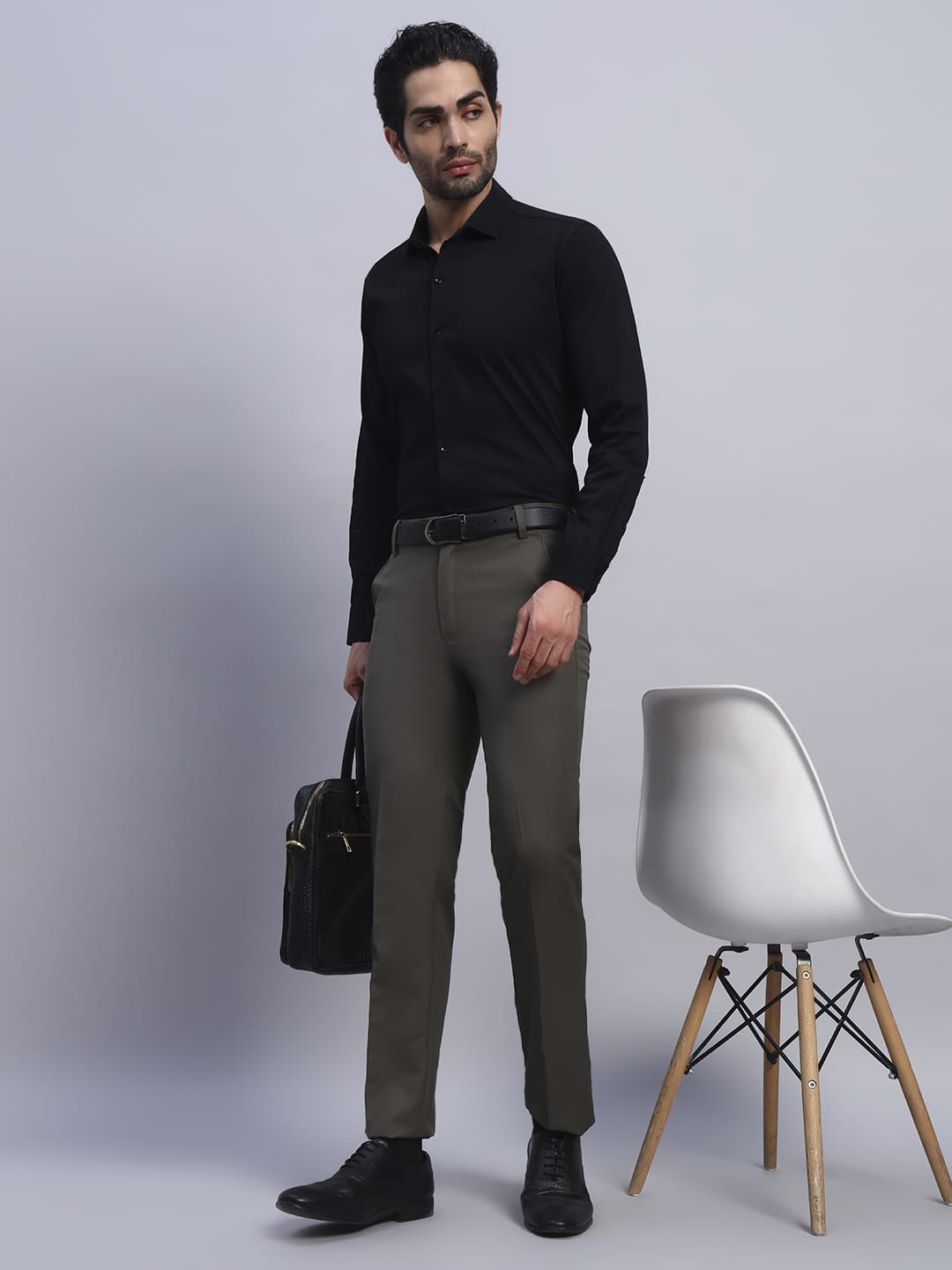 Drapes&Dream Black Lycra Formal Straight Men's Trouser