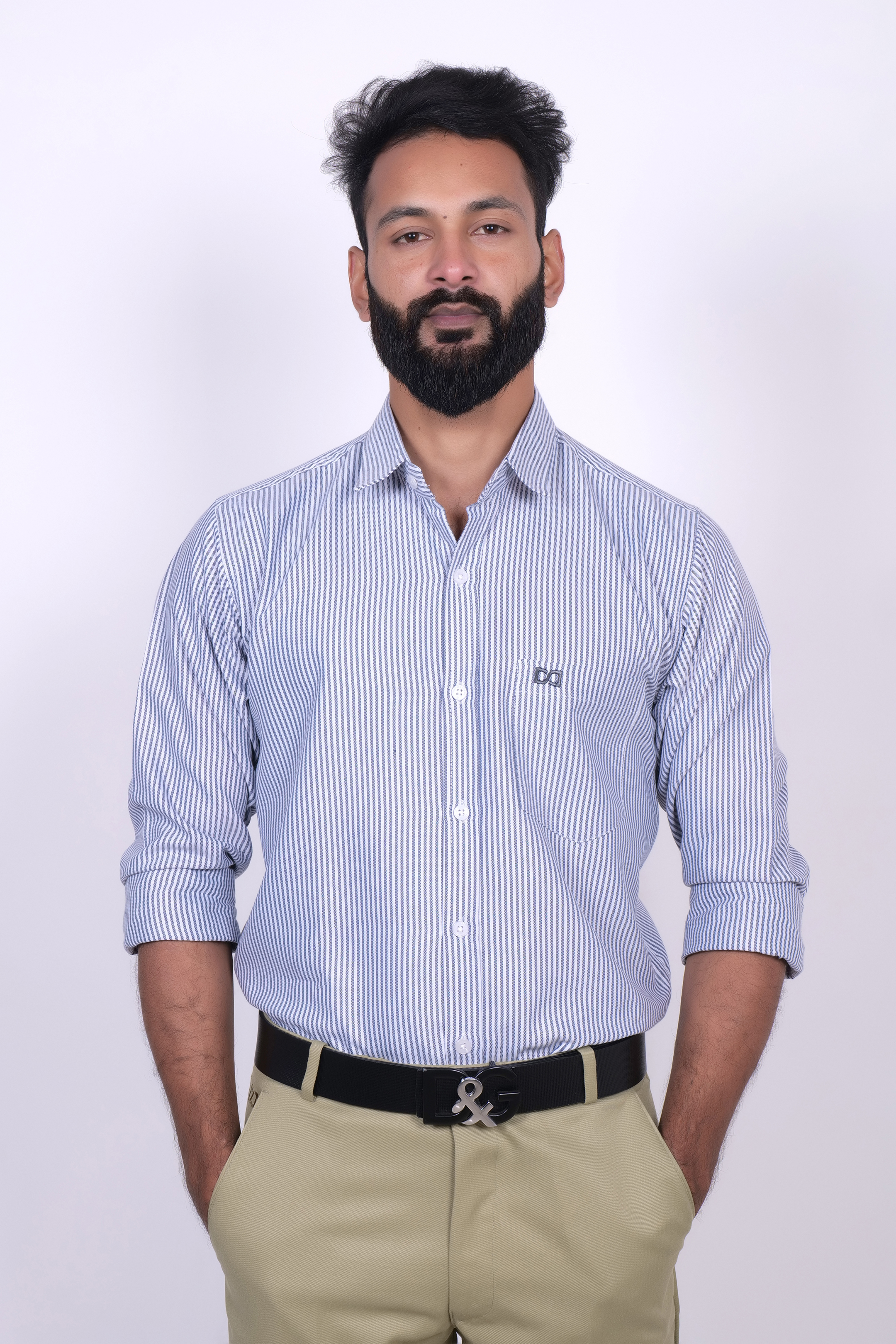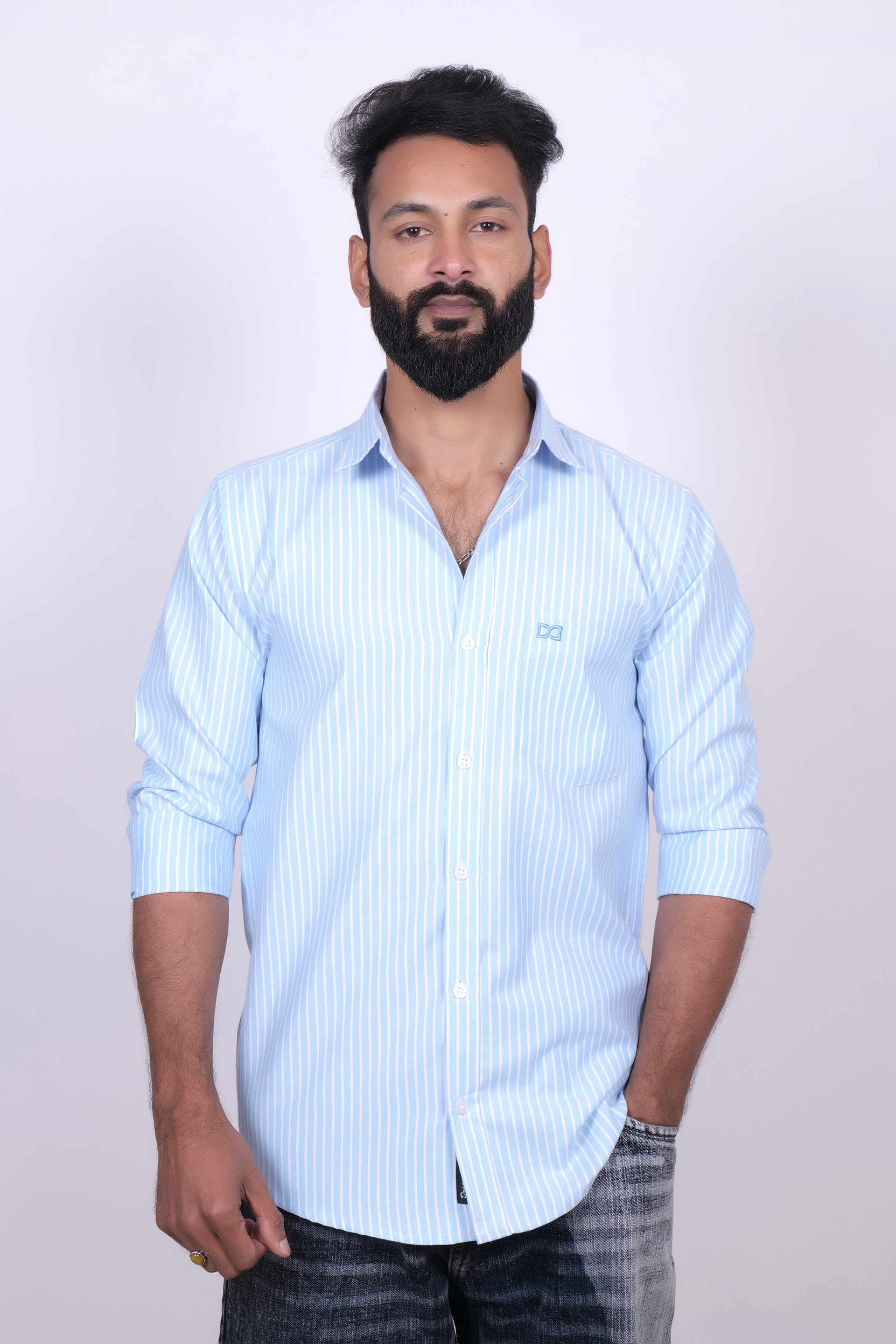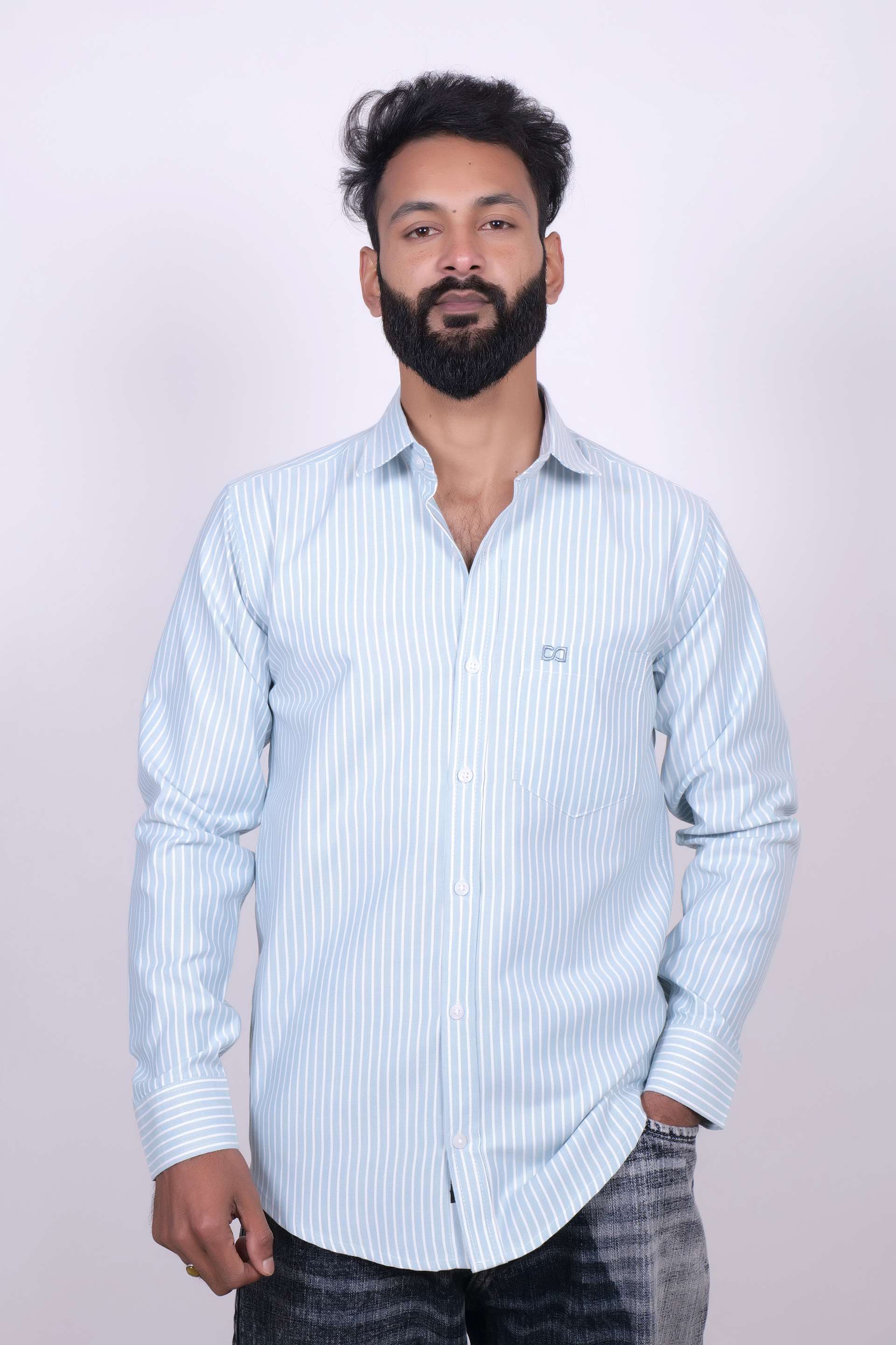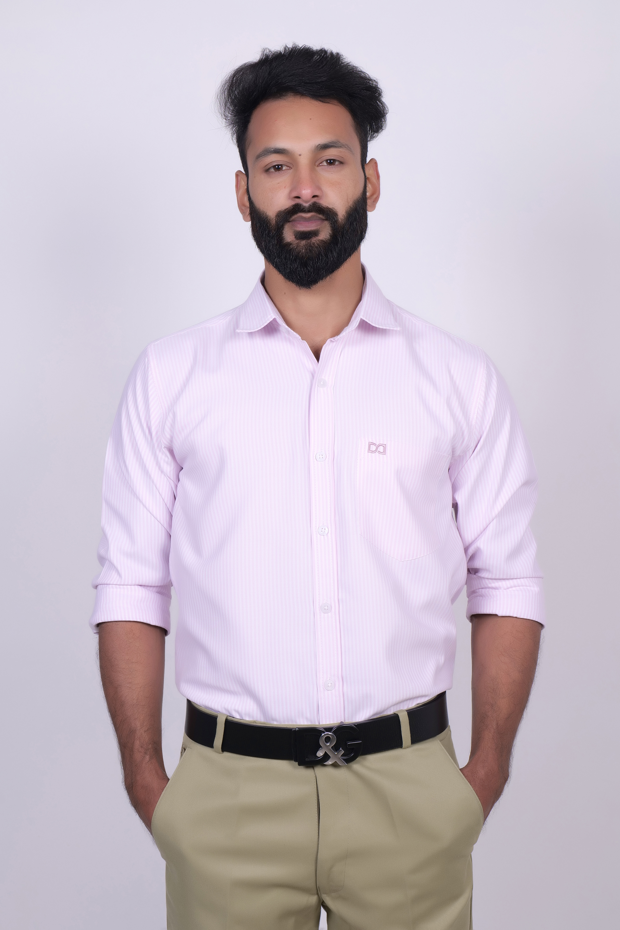 Premium striped formal shirt crafted for a sharp and confident look Vertical stripe pattern enhances...